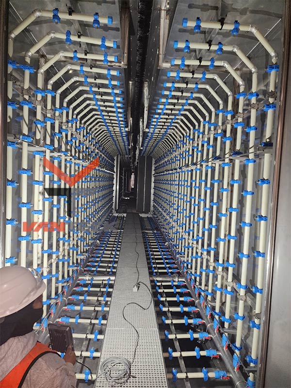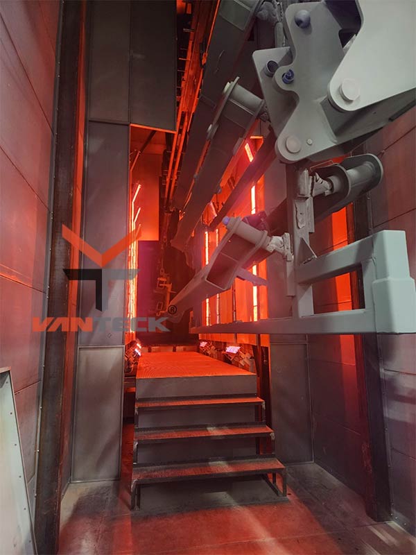 Vertical Automatic Painting Line for painting aluminum profiles.