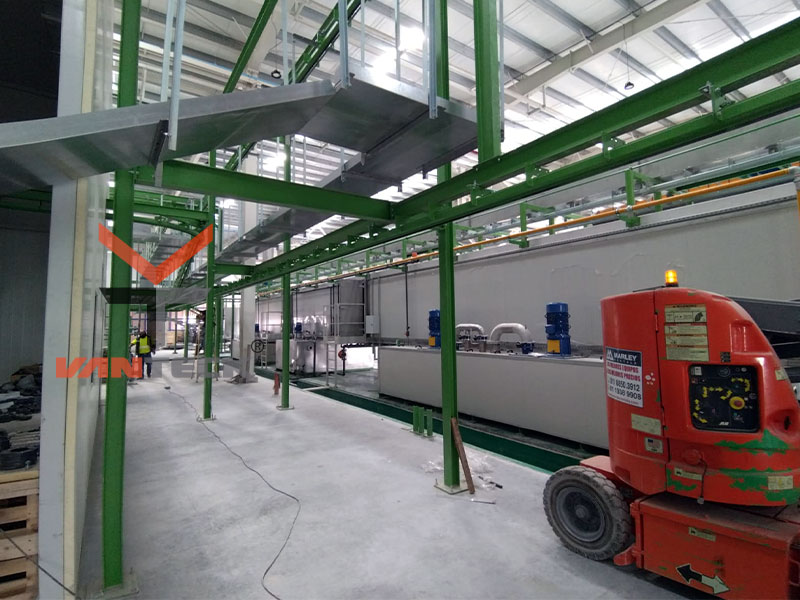 Línea Automática Vertical para pintar perfiles de Aluminio.